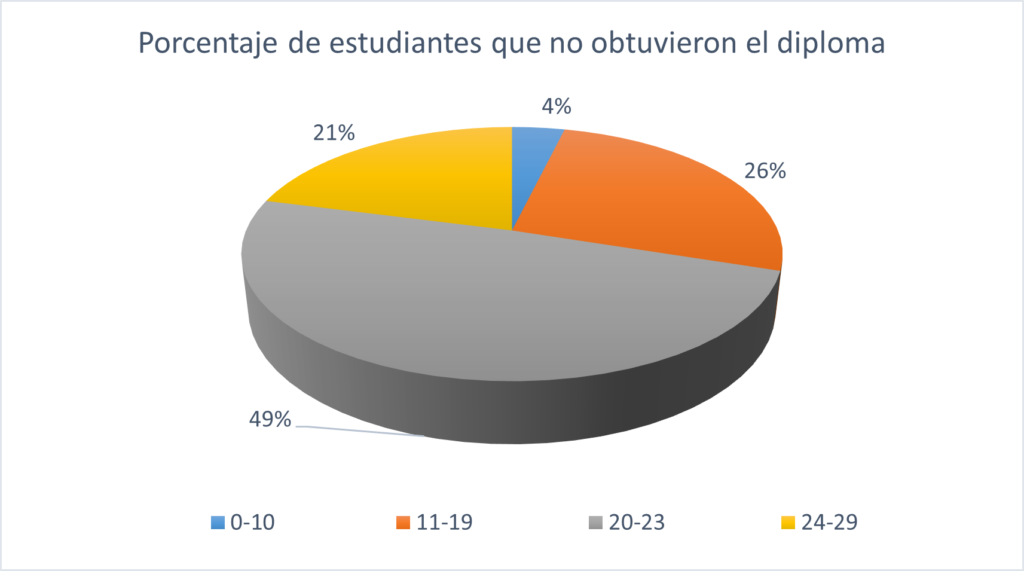 De acuerdo con los últimos cinco boletines estadísticos (2020-2024) del International Baccalaurate Organization (IBO), la población de estudiantes que no lograron conseguir el diploma es del 49%, con calificaciones finales entre los 20 y los 23 puntos.